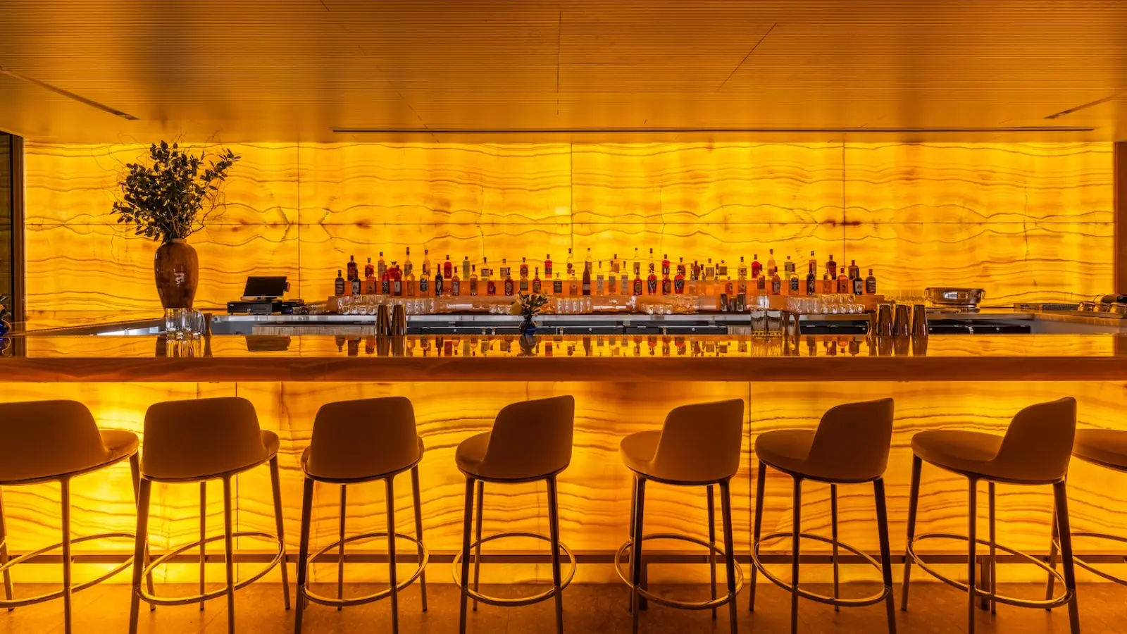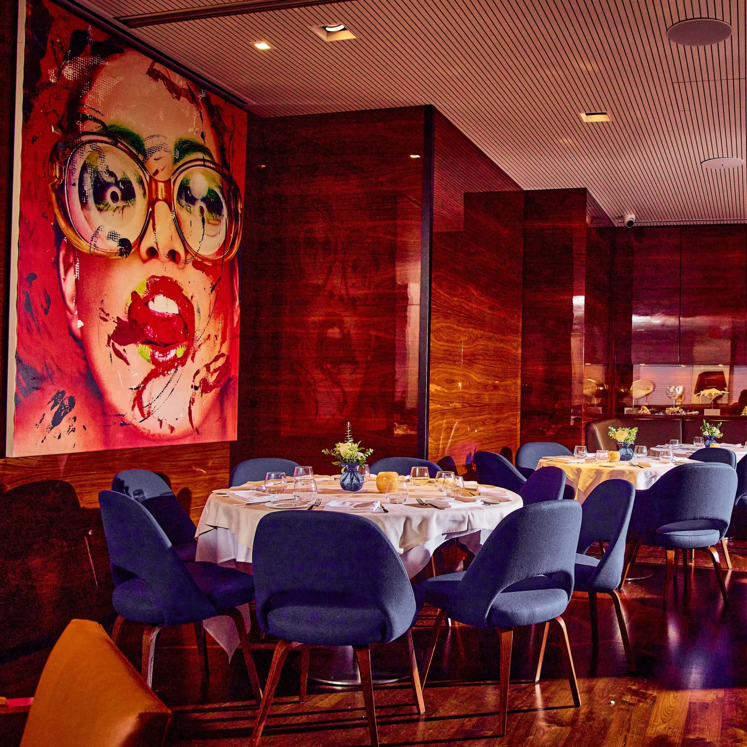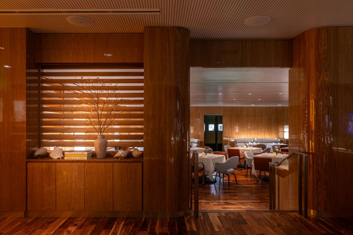 Son intérieur chaud et boisé donne l’impression d’un yacht prêt à appareiller. Le bar est entièrement constitué d’un bloc de marbre brun rétro-éclairé, donnant un caractère hors du commun à l’ensemble. Situé au coeur de Manhatan au sud de Central Park, le Marea conjugue les fruits de mer à l’Italienne.